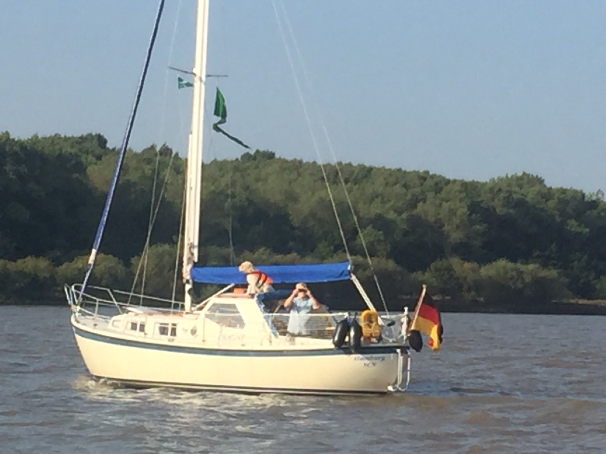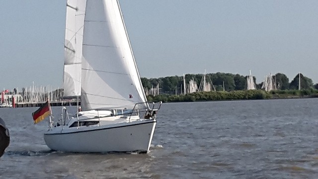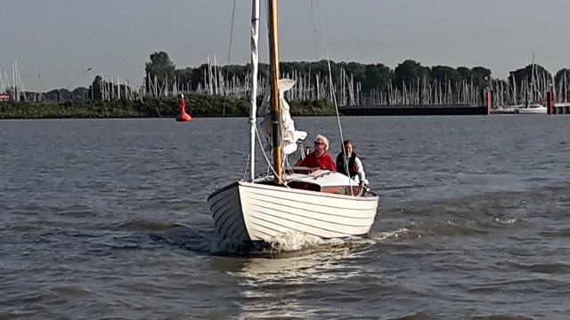Eine Zubringerwettfahrt zum SCNK im Rüschkanal in Finkenwerder wurde um 09:30 zwischen Hanskalbsand und der Fahrwassertonne 121 gestartet. Bei leichtem östlichem Wind erreichten leider nur zwei Boote das Ziel zwischen der Fahrwassertonne 130 und dem Museumsguppy auf dem Airbusgelände unter Segeln. Der Wind reichte für einige am Ende nicht mehr aus, um gegen den einsetzenden Ebbstrom anzukreuzen.
