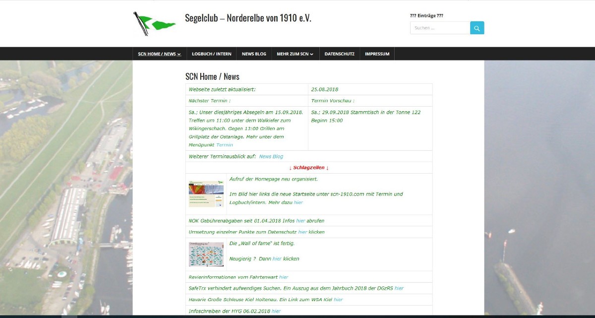 Die neue Frontseite SCN Home/News mit der Übersicht und Meldungen.